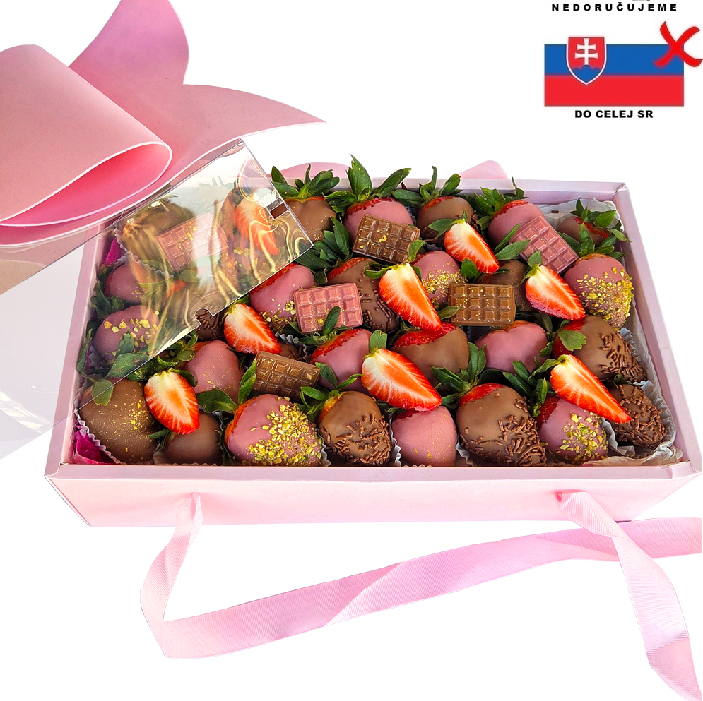 Čokoláda Callebaut (cukor, kakaové maslo, sušené mlieko, kakaová hmota (min. obsah 32%), emulátor E322 sójový lecitín, vanilková aróma. Mliečna 32/36%, horká 54,5%, RUBY 47,3% (kyselina: kyselina citrónová; prírodná vanilková príchuť, môže obsahovať stopy mlieka) obsah kakaa, mliečna a biela obsahujú sušené polotučné mlieko, pistácie, kakaové vločky (mliečna čokoláda), cukrársky pšeničný/ modifikovaný škrob.
